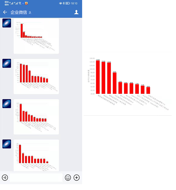 我公司开发的数据分析推系统就是为了实现经过对ERP等软件系统的数据进行分析,然后推送到其他移动端系统,目前第一期已与企业微信对接成功,可把处理过的数据以图表的方式推送显示到企业微信应用中。